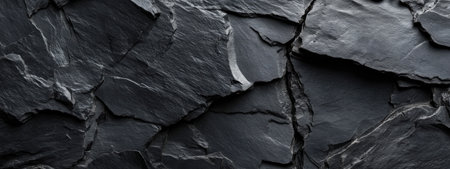 Black slate rock texture background, dark gray stone surface banner panorama for design with copy space. High-resolution photo. --ar 8:3 --v 6.1 Job ID: ef0aa74d-385c-4b9c-9f2a-de7a87f9b956