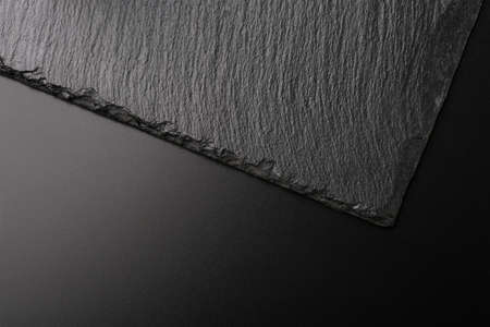 Dark gray slate stone surface with a rough, layered texture, providing a natural, abstract background.