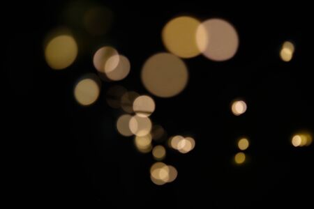 Blurred focus of circular bokeh lights in warm golden tone for abstract background. Seasons greetings, Merry Christmas and Happy New Year celebrations concept.