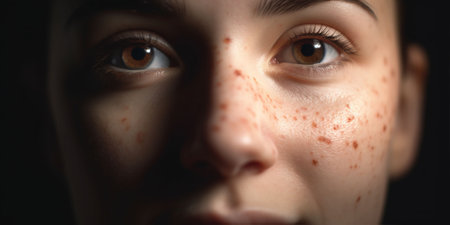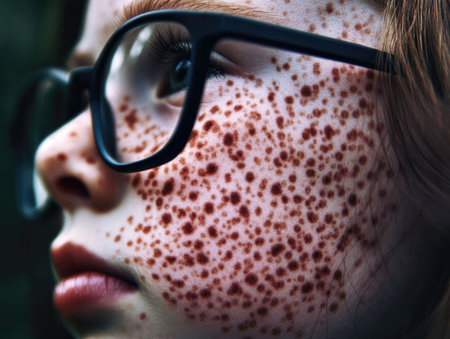 An AI generated illustration of an adolescent female with a complexion featuring red spots and freckles