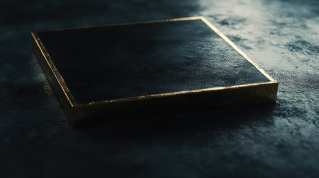 This captivating image features a dark square surface with gold edges, ideal for modern product presentations or artistic backgrounds in minimalist design.