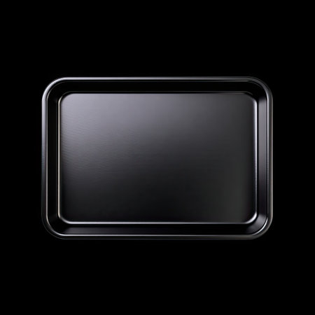 A sleek black rectangular serving tray set against a dark backdrop. Ideal for culinary presentations and food service, this tray offers a modern aesthetic suitable for various dining occasions.