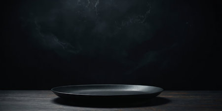 Empty black plate on black background. 3d rendering, 3d illustration.