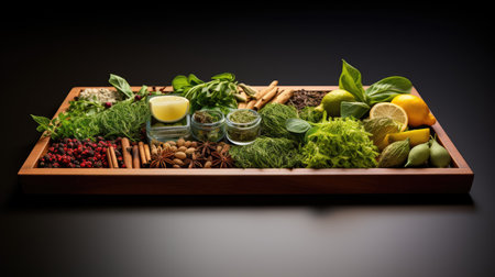 Traditional Tea Set on Wooden Tray with Brewing Leaves