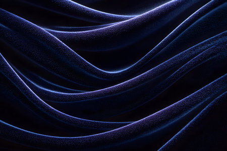 A creative digital illustration depicting Artistic creative design featuring folded dark velvet fabric in deep charcoal tones, elegant drapery composition, soft diffused lighting with golden highlights, sophisticated mysterious atmosphere, co. This AI-generated artwork features unique visual elements suitable for various commercial and editorial applications. AI-generated illustration.