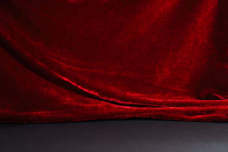 red velvet curtain and black paper background. Holiday season Christmas and New Year luxury retro party with copy space