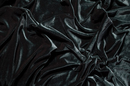 A black fabric with a shiny surface. The fabric is long and has a shiny texture. Concept of luxury and elegance