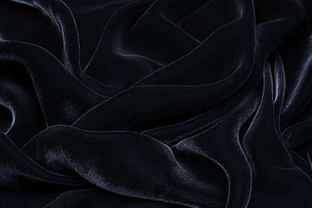 Silk fabric with viscose, velvet. Black color. Texture, background, pattern.