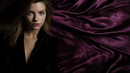 This close-up image captures the gentle drape and luxurious texture of a rich purple fabric, perfect for showcasing in fashion, textile, or design projects.