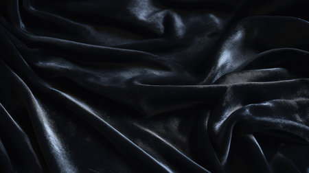 Luxurious black velvet texture background with soft folds and subtle highlights. Generative AI
