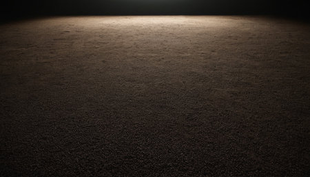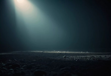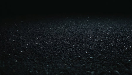 Close-up view of black asphalt on black background with spotlights