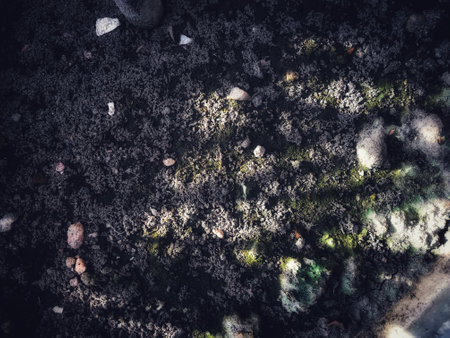 Texture of wet black ground with moss