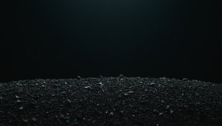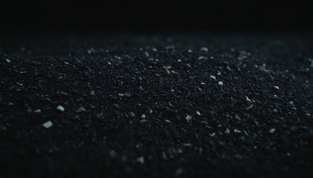 Captivating close-up of rich, dark soil or powder reveals intricate textures. Its organic, earthy feel creates a versatile, natural background for diverse projects.