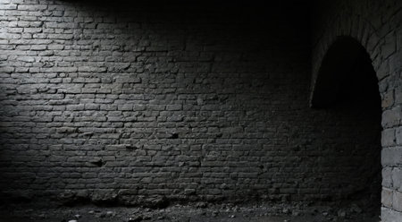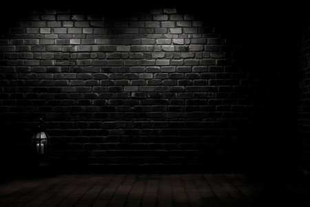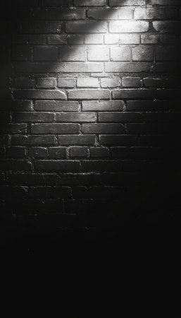 Dramatic Spotlight on Textured Black Brick Wall, Grunge Background for Design Projects