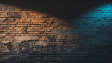 Dramatic blue brick wall background evoking powerful emotions in a striking night scene setting.
