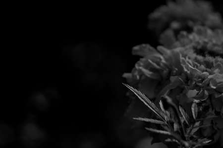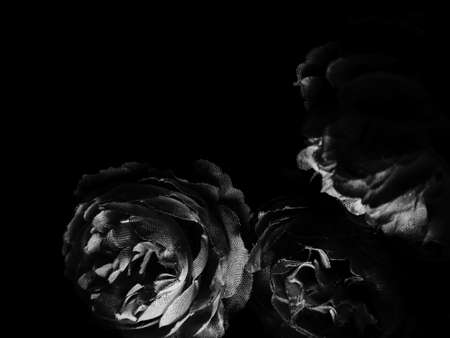 Black and white roses on a black background. Place for text.