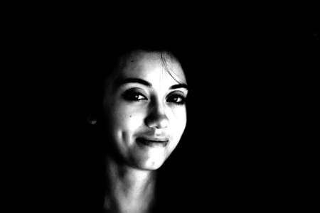 Black and white portrait of an Italian young woman on black background