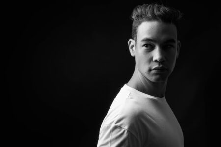 Young handsome multi ethnic man in black and white