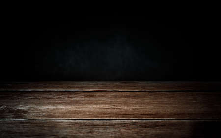 Wood table kitchen. Timber plank surface wall for vintage grunge wallpaper. Old floor wooden pattern. Dark grain panel board table with copy space. Montage product design concept