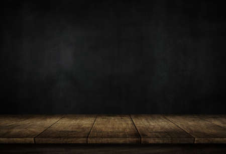 Grunge vintage table and black wall background