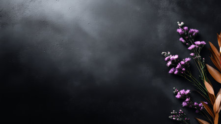 A close-up macro shot of dark, moody black flowers with delicate petals and a detailed center, set against a soft, blurred background.