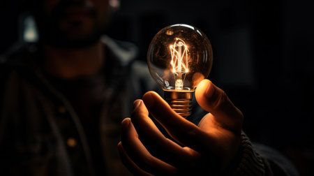 lightbulb illuminated against a dark backdrop, symbolizing change, created with generative ai