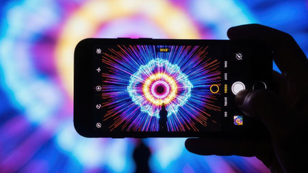 Dynamic light trails create an energetic overlay in a mesmerizing circular pattern