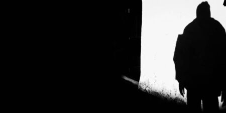 Silhouette of a man in profile on a dark background.