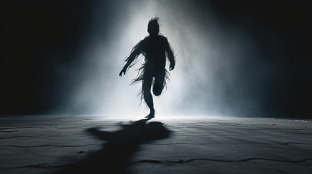 human shadow in the dark wrangle art print, inspired by bertil nilsson's style. dramatic lighting effects create a frayed and expressive character design, reminiscent of maori art. this associated press photo captures the essence of dance and movement. ai generated