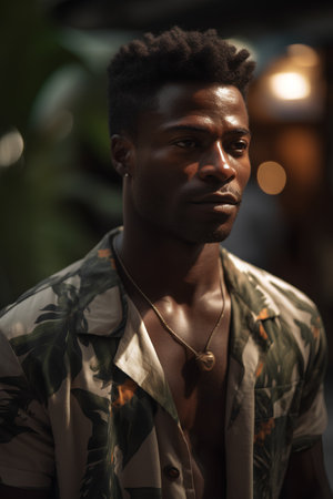 Portrait of a handsome young black man with a beam of light in his eyes
