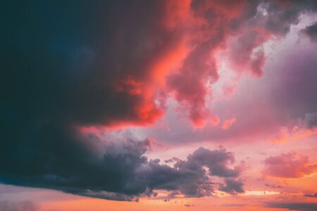 Amazing Natural Bright Dramatic Sky In Different Colours During Rain In Sunset Sunrise Time. Colorful Sky Background. Beauty In Nature.