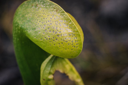 Leaves modified in animal traps of sarracenia carnivorous plant.