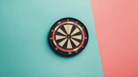 A striking dartboard sits against a vibrant pastel background, showcasing a blend of colors perfect for gaming or leisure themes. Ideal for sports and entertainment visuals.