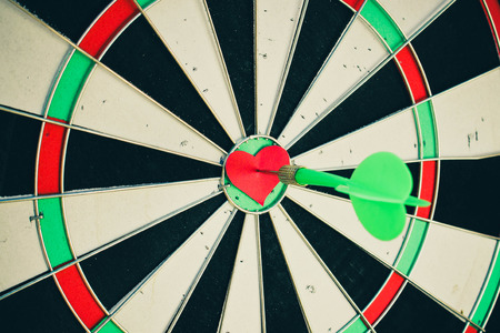 Darts arrow in the target center of the heart. Toned image.