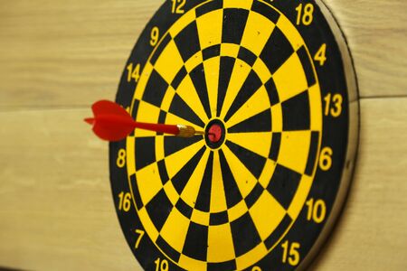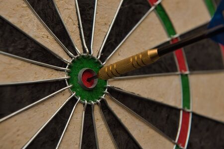 Darts target closeup. Success hitting target aim goal achievement concept.