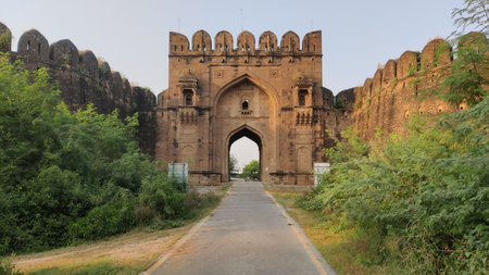 Jhelum Rohtas Qila Fort in Punjab Province Picturesque Breathtaking View of the Entrance Gate on a Sunny Blue Sky Day