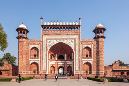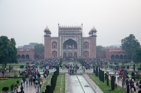 Agra, India - November 16, 2011: people visit Darwaza i Rauza, the Great Gate of Taj Mahal in Agra, Uttar Pradesh, India.