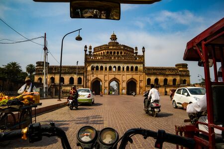 LUCKNOW, INDIA - DEC 19: Tourist and citizens near the famous historical gateway Rumi Darwaza at the sunny day on December 13,2019 in Lucknow, India