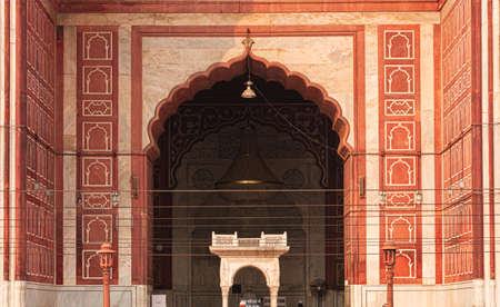 The spectacular architecture of the Great Friday Mosque (Jama Masjid) in Delhi during Ramzan season, the most important Mosque in India, Jama Masjid Mosque, Old town of Delhi 6, India