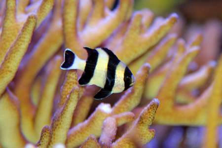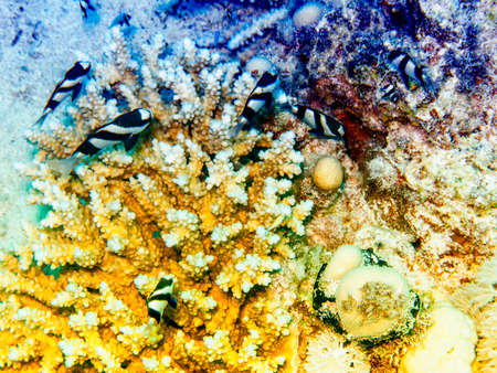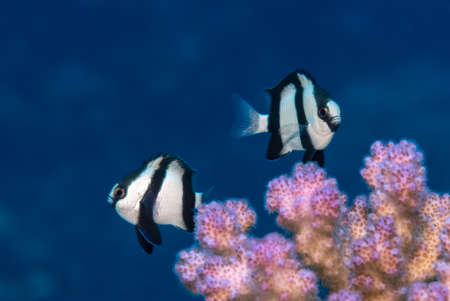 Whitetail dascyllus (Dascyllus aruanus) in the Red Sea, Egypt.