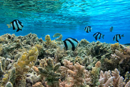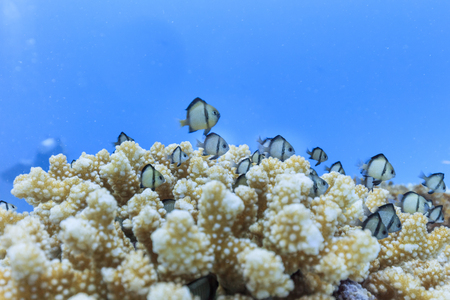 Underwater coral reef scene with humbug damselfish - (Dascyllus aruanus)