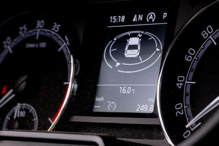 Odometer Car digital modern , Panel of devices of car afoot. background is not isolated. the Neterlands.