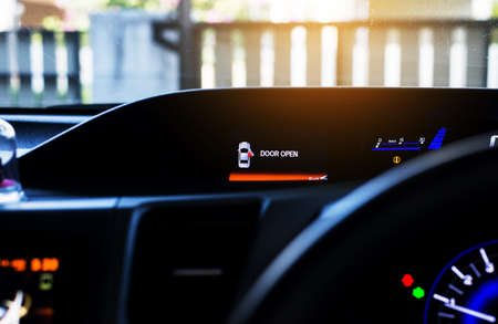 Close up shot open doors car warning signs,Monitor system,Close and open door notification
