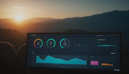 Close-up of a sophisticated data visualization dashboard featuring various graphs and analytics for monitoring performance and trends in real-time.