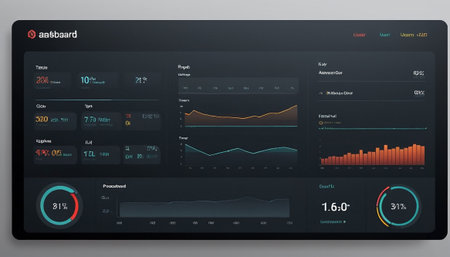 A sleek data dashboard showcasing visual analytics and insights with graphs and metrics. Perfect for business performance analysis and reporting.
