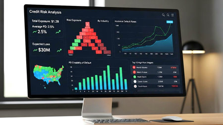 Dashboard displaying credit risk analysis with various charts and data visualizations.