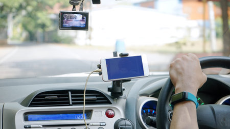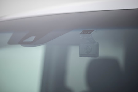 Dashboard camera in action installed on car windscreen