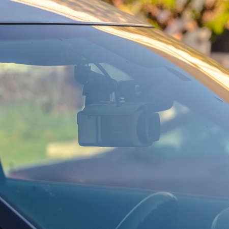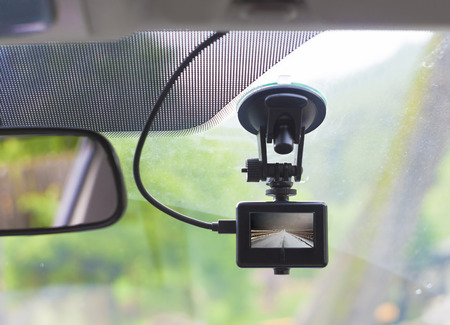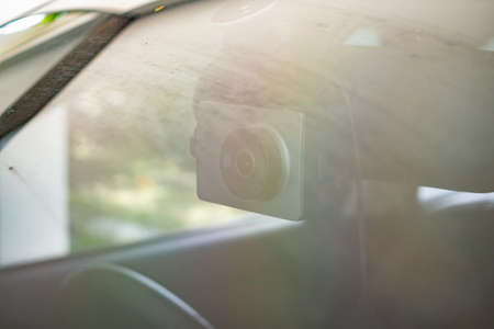Car DVR on windshield close up