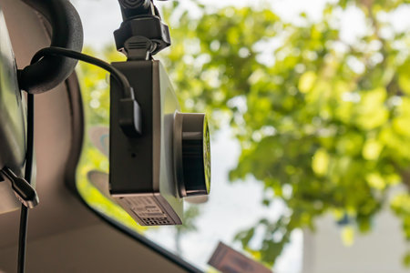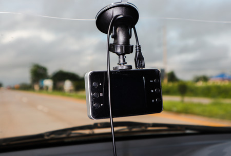 black video camera record technology on windscreen vehicle car