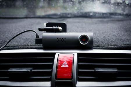 Car video camera (dash cam) in car ,Concept of safety camera for car protection, technology for safety